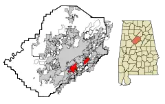 ![]() Ubicación en los condados de Jefferson y Shelby en el estado de Alabama ![]() Ubicación de Alabama en los EE. UU. | ||