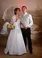 - Novios vestidos para la boda.