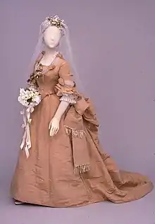 Antes de la época victoriana las novias occidentales se podían casar de cualquier color excepto el negro (el color propio del luto) o el rojo (que estaba relacionado con la prostitución ).[5] El vestido blanco vino a simbolizar la pureza del corazón y la inocencia de la niñez, siendo estos sin mangas ya que simboliza el ser una mujer pura sin necesidad de sostén, social o emocional. Una atribución más reciente sugirió que el color blanco simbolizaba la virginidad, pero esta pauta no cuadra a menudo con que las novias viudas o divorciadas utilicen los vestidos blancos para sus sucesivas uniones. Originariamente el azul era el color que se relacionaba con la pureza. A principios del siglo XXI las tendencias empezaron a variar aunque se sigue manteniendo el blanco como color fundamental del vestido nupcial.[6]