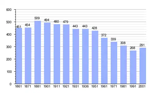 Gráfica de evolución demográfica de Vestreno entre 1861 y 2001 |