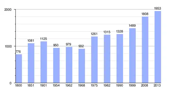 Gráfica de evolución demográfica de Veyrins-Thuellin entre 1800 y 2013 |