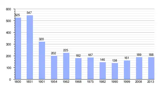 Los datos demográficos contemplados en este gráfico de la comuna de Vezet[4] se han cogido de 1800 a 1999 de la página francesa EHESS/Cassini, y los demás datos de la página del INSEE.[5]