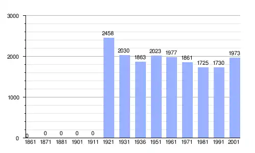 Gráfica de evolución demográfica de Vezzano entre 1861 y 2001 |