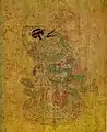 ![]() Pintura de una deidad persa en el reverso de un panel pintado, probablemente representando el legendario héroe Rustam, tradicionalmente atribuida a Viśa Īrasangä. | ||