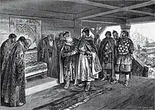 ![]() "El príncipe Izyaslav Mstislavich ofrece paz y amistad a su tío Vyacheslav". | ||