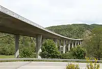 Este viaducto está formado por 11 tramos de 40 m de luz, rodeados por 2 tramos de 32 m de luz. El tablero se apoya sobre 12 pilas de altura variable entre 11,5 y 30 m de altura.