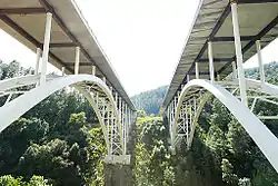 El viaducto está duplicado, es decir, hay 2 viaductos paralelos de aspecto muy similar que permiten la circulación en ambos sentidos en calzadas separadas. Así pues, cada uno de los 2 viaductos está formado por 2 arcos metálicos dobles, uno a continuación del otro. En total, hay 8 arcos metálicos.[2]