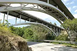 Esta obra tiene la singularidad de ser el único viaducto en arco que existe en el Eje Transversal. Además, sus 394 metros de longitud hace que sea uno de los viaductos más largos de esta carretera.