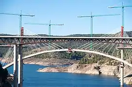 Este puente construido en arco resiste grandes esfuerzos debido a su gran longitud y a su esbeltez, para construirlo ha sido necesario emplear un hormigón de alta resistencia cuya resistencia a compresión después de 28 días es de 70 MPa. Además el tablero tiene sección en cajón de hormigón y cuenta con una anchura de algo más de 14 metros. Está formado por 14 vanos de longitud variable. Los vanos de los extremos cuentan con una longitud de 36,2 metros mientras que los centrales miden 43,5 metros.