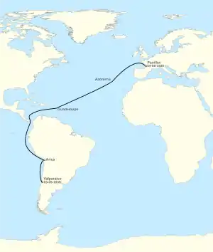 Lugar | Pauillac (Francia) hasta Valparaíso (Chile). | |