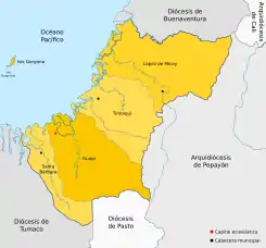 ![]() Mapa de la jurisdicción del Vicariato Apostólico de Guapi | ||