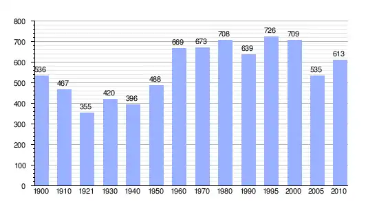 En 2010 registró una población de 613 personas, lo que corresponde al 12.14 % de la población municipal.[12] De los cuales 299 son hombres y 314 son mujeres.[12] Tiene 193 viviendas particulares habitadas.[12]