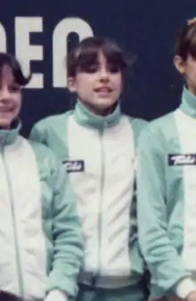 ![]() Victoria (de pie, cuarta a la derecha) con la selección en la Final de la Copa del Mundo de Belgrado (1983). |