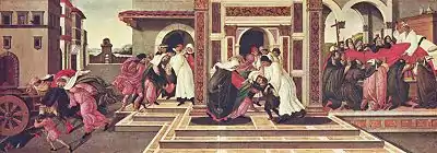 Botticelli representó la vida y obras de San Cenobio (337-417), el primer obispo de Florencia, a lo largo de cuatro pinturas, actualmente dispersas entre varios museos del mundo: