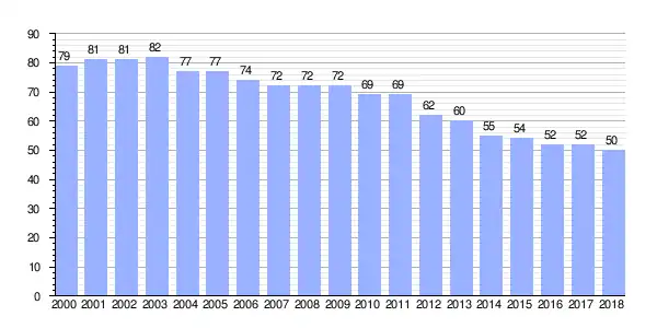 Gráfica de evolución demográfica de Vidaloíso entre 2000 y 2018 |