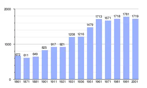 Gráfica de evolución demográfica de Viddalba entre 1861 y 2001 |