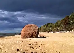 - La playa de Vidzeme - playa arenosa prístina con acantilados de arenisca, cascadas, cantos rodados;