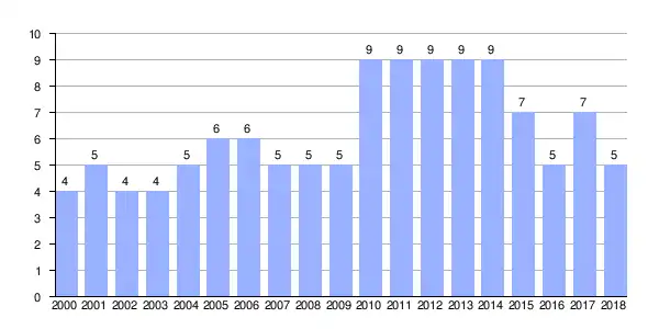 Gráfica de evolución demográfica de Vieite entre 2000 y 2018 |
