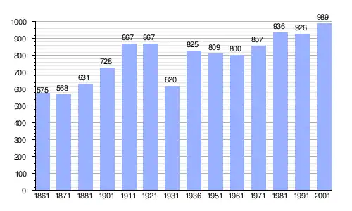 Gráfica de evolución demográfica de Vigano San Martino entre 1861 y 2001 |