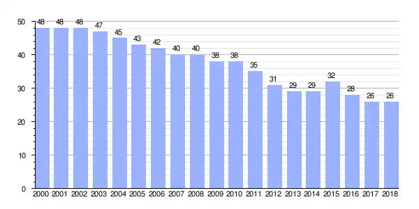 Gráfica de evolución demográfica de Vigobó entre 2000 y 2018 |