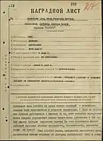- Héroe de la Unión Soviética (N.º 134, 21 de marzo de 1940);