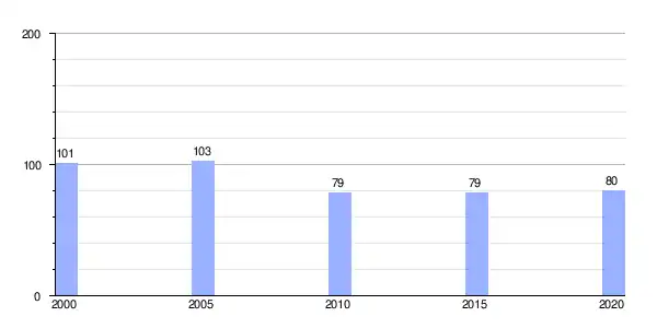 Gráfica de evolución demográfica de Vila de Mouros entre 2000 y 2020 |