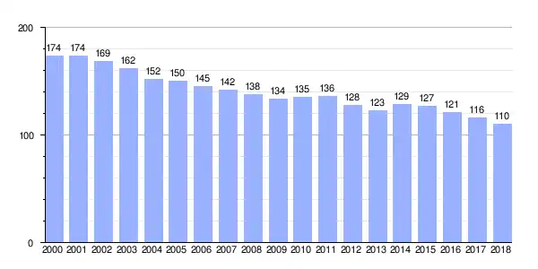Gráfica de evolución demográfica de Vilacoba (parroquia) entre 2000 y 2018 |
