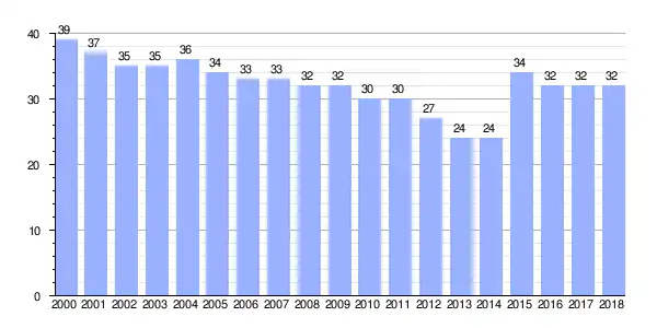 Gráfica de evolución demográfica de Viladóniga entre 2000 y 2018 |