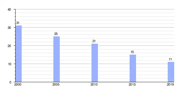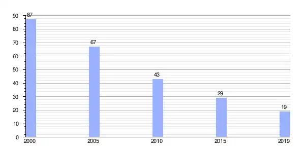 Gráfica de evolución demográfica de Vilar de Cuiña (parroquia) entre 2000 y 2019 |