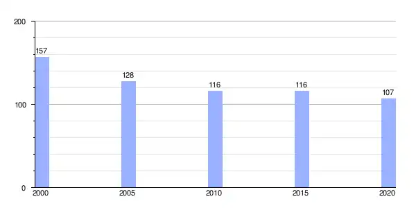 Gráfica de evolución demográfica de Vilar de Donas (parroquia) entre 2000 y 2020 |