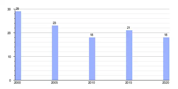 Gráfica de evolución demográfica de Vilar de Donas (aldea) entre 2000 y 2020 |
