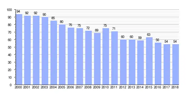 Gráfica de evolución demográfica de Vilar de Suso entre 2000 y 2018 |