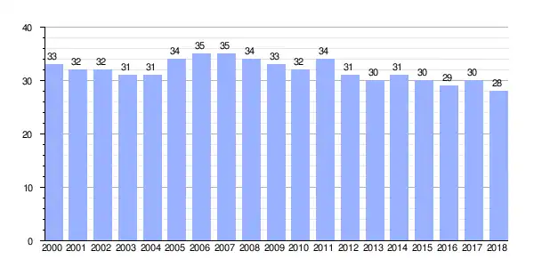 Gráfica de evolución demográfica de Vilares entre 2000 y 2018 |