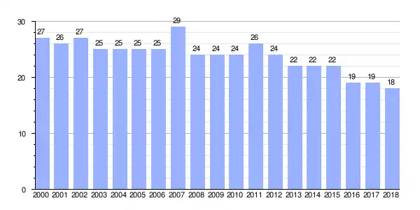 Gráfica de evolución demográfica de Vilariño entre 2000 y 2018 |