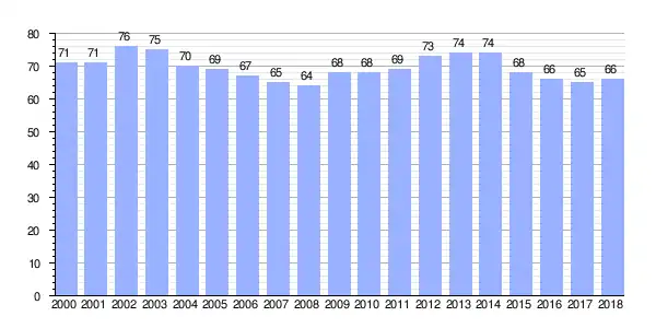 Gráfica de evolución demográfica de Vilas entre 2000 y 2018 |