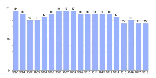 Gráfica de evolución demográfica de Vilidón entre 2000 y 2018 |