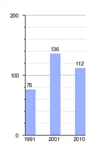 Gráfica de evolución demográfica de Vilismán entre 1991 y 2010 |
