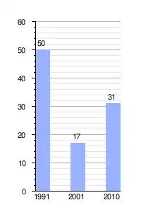 Gráfica de evolución demográfica de Villa Castelar entre 1991 y 2010 |
