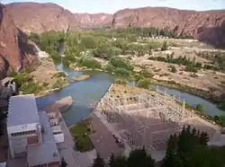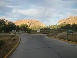 Se encuentra en inmediaciones del Dique Florentino Ameghino sobre el Río Chubut, a 140 km al oeste de la ciudad de Trelew.
