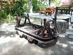 - Restos del andén y playa de maniobras de la estación. Su edificio de chapa es un recuerdo y el tanque de cemento está intacto con el surtidor para locomotoras