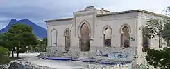 El palacete está circundado por una gran explanada delimitada por un murete almenado que sirve de mirador y que refuerza su carácter neomedieval.