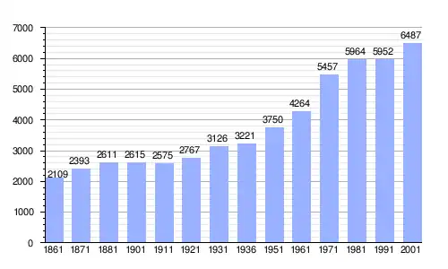 Gráfica de evolución demográfica de Villa Guardia entre 1861 y 2001 |