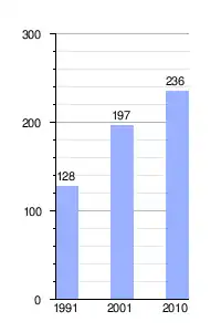 Gráfica de evolución demográfica de Villa Gutiérrez entre 1991 y 2010 |