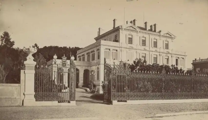Era rectangular con un amplio jardín. Era de estilo clasiquizante. Contaba con una salones, biblioteca, comedor y capilla, en el piso bajo. En los pisos superiores superiores contaba con cuartos para la familia e invitados. En el sótano se disponían las habitaciones de servicio.