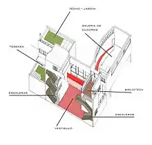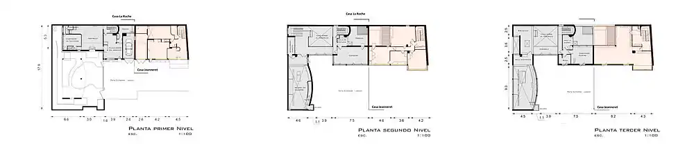 Para responder al encargo de Raoul La Roche, Le Corbusier y Pierre Jeanneret conciben un proyecto de casa/galería que disocia estas dos funciones. Por un lado: la galería de cuadros y la biblioteca, destinadas a albergar la importante colección de pintura y escultura, al otro: el espacio de vivienda, reservado a las actividades domésticas. El apartamento de Raoul La Roche se dispone alineado con la casa medianera de Jeanneret.