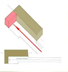 B. Separación La configuración de la casa de divide en elementos separados, uno contiene el eje lineal, y el otro se sitúa paralelamente al mismo.