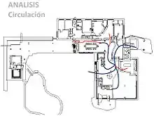 Si bien es un recorrido jerarquizado, el espacio es fluido debido a la disposición de las columnas, puestas de forma aleatoria siguiendo la idea de bosque.