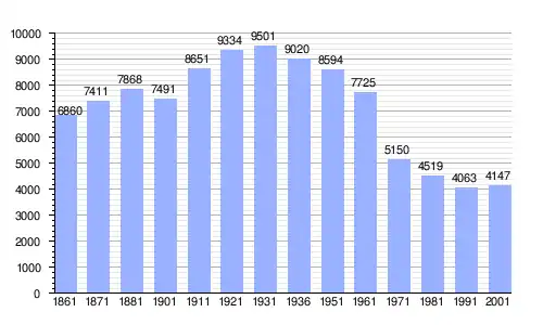 Gráfica de evolución demográfica de Villa Minozzo entre 1861 y 2001 |