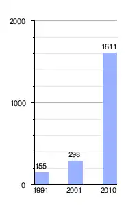 Gráfica de evolución demográfica de Aluminé entre 1991 y 2010 |