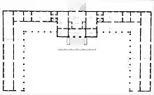 Incluso en planta la villa es de una simplicidad desarmante: dos ambientes menores destinados a acoger las escaleras determinan la forma de «T» de la sala, a cuyos lados se disponen dos pares de estancias unidas por relaciones proporcionales.